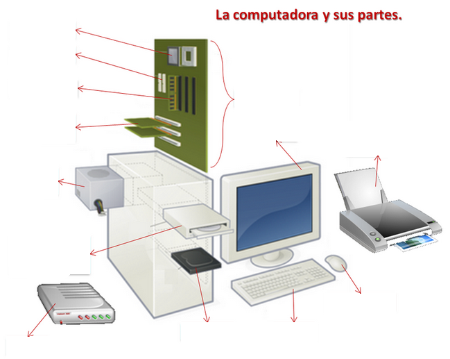 La computadora y sus partesOnline version Sera divertido by Tudor Stan 1 Procesador 2 Puertos ATA 3 Memoria RAM 4 Placas de expansion 5 Fuente de poder 6 Unidad de almacenamiento optico 7 Modem 8 Disco duros 9 Teclado 10 Raton 11 Impresora 12 Monitor 13 Placa madre