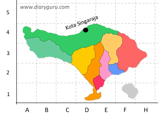 Quiz Matematika Kelas 6: Menentukan LokasiOnline version Uji pengetahuanmu tentang menentukan lokasi dengan soal pilihan ganda ini! by YUNITA FITRIA NINGSIH 1 lokasi kita Singaraja adalah..... a D,4 b D,3 c C,4 d C,3 2 LOKASI JAWA TIMUR TERLETAK DI…. a D,1 b C,1 c B,1 d A,1 3 3.TENTUKAN LOKASI DARI X ADALAH…. a B,3 b C,3 c D,3 d E,3 4 4.LOKASI DARI AYAM PADA GAMBNAR ADALAH… a D,5 b E,5 c E,4 d D,4 5 LOKASI DARI TABUNG ADALAH….. a D,1 b D,2 c D,3 d D,4 6 TENTUKAN LOKASI DARI BERUANG ADALAH…. a B,4 b B,3 c C,4 d C,3