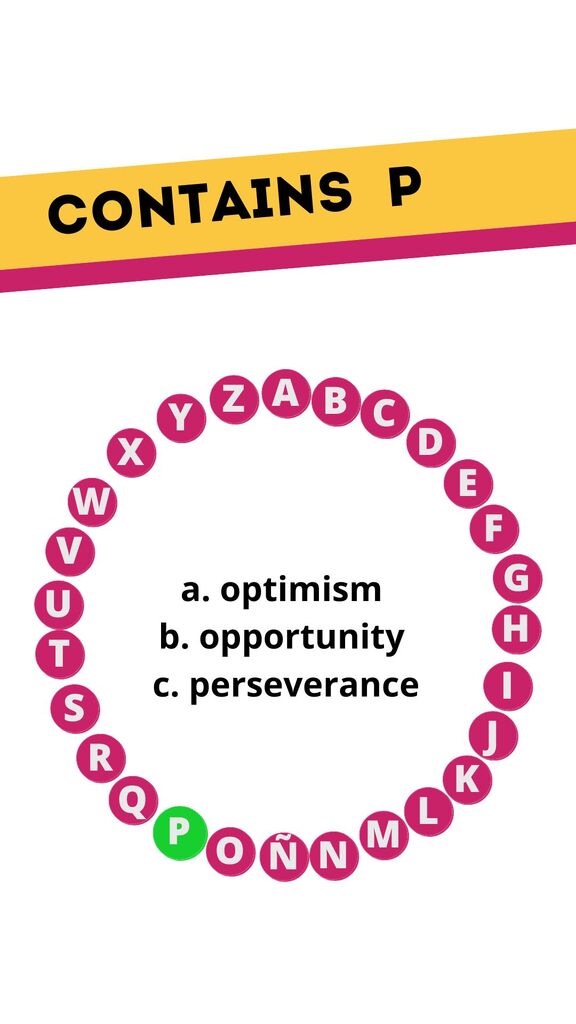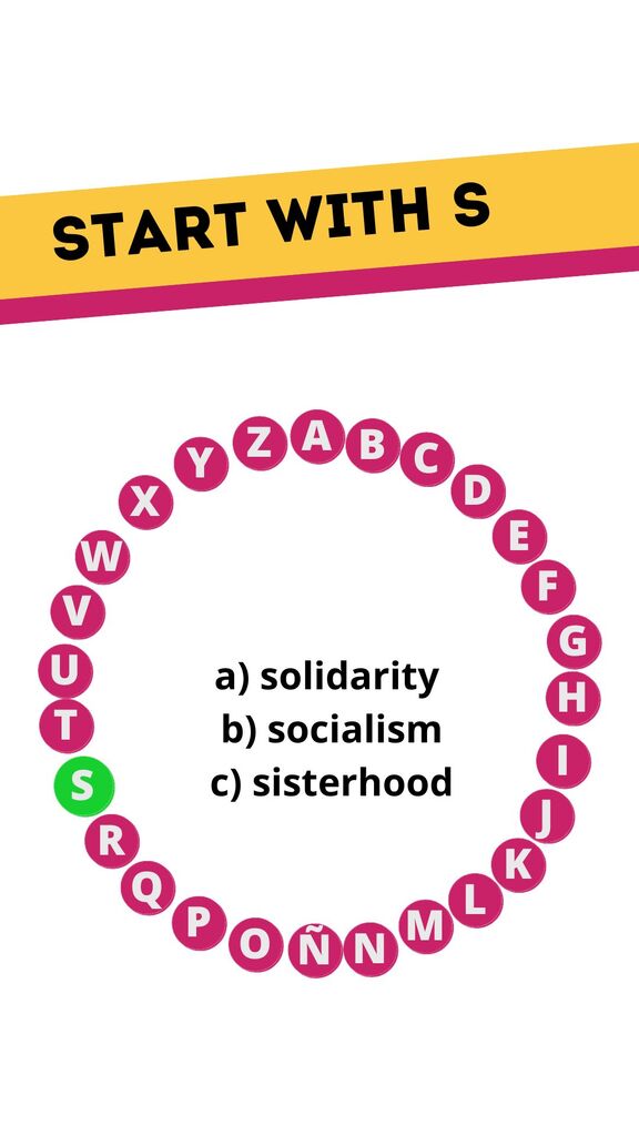 A to Z of Woman's DayOnline version Guess the words related to women's empowerment and lifestyle from A to Z! by Olympe Safo A B C D E F G H I J L M N O P R S T U V X Y Z Starts with A A person who works to change things in society. Starts with B A situation where things are equal. Starts with C When something becomes different. Starts with D A sense of self-respect and worth. Starts with E The idea that everyone should be treated the same. Starts with F The right to live and make choices without control. Starts with G The characteristics of being male or female. Starts with H A feeling of wanting something good to happen. Starts with I To make someone want to do something good. Starts with J Fair treatment for everyone. Starts with L The ability to guide others. Starts with M A group of people working for change. Starts with N To care for and help grow. Starts with O A favorable circumstance for advancement, often discussed in the context of women's careers. Contains P The quality of continuing despite difficulties, often celebrated in women's stories. Starts with R The freedoms and privileges of people. Starts with S The bond among women who support each other, often emphasized in community discussions. Starts with T Accepting differences in people. Starts with U Being together and working as one. Starts with V The ability to think about or plan the future with imagination, often discussed in women's leadership. Starts with X Fear or dislike of people from other countries. Starts with Y The time of life when one is young, often focused on in discussions about future women leaders. Starts with Z Great energy and enthusiasm.