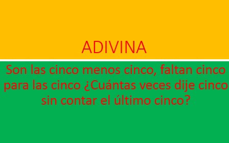 ADIVINANZA MATEMATICAOnline version Solo debes leer atento y comprender para adivinar la repuesta by EVR FREDY MUÑOZ SALCEDO 1 cuenta cincos Pistas 1 auidio