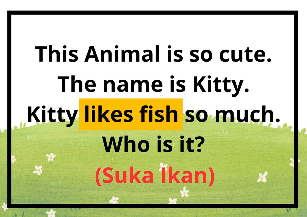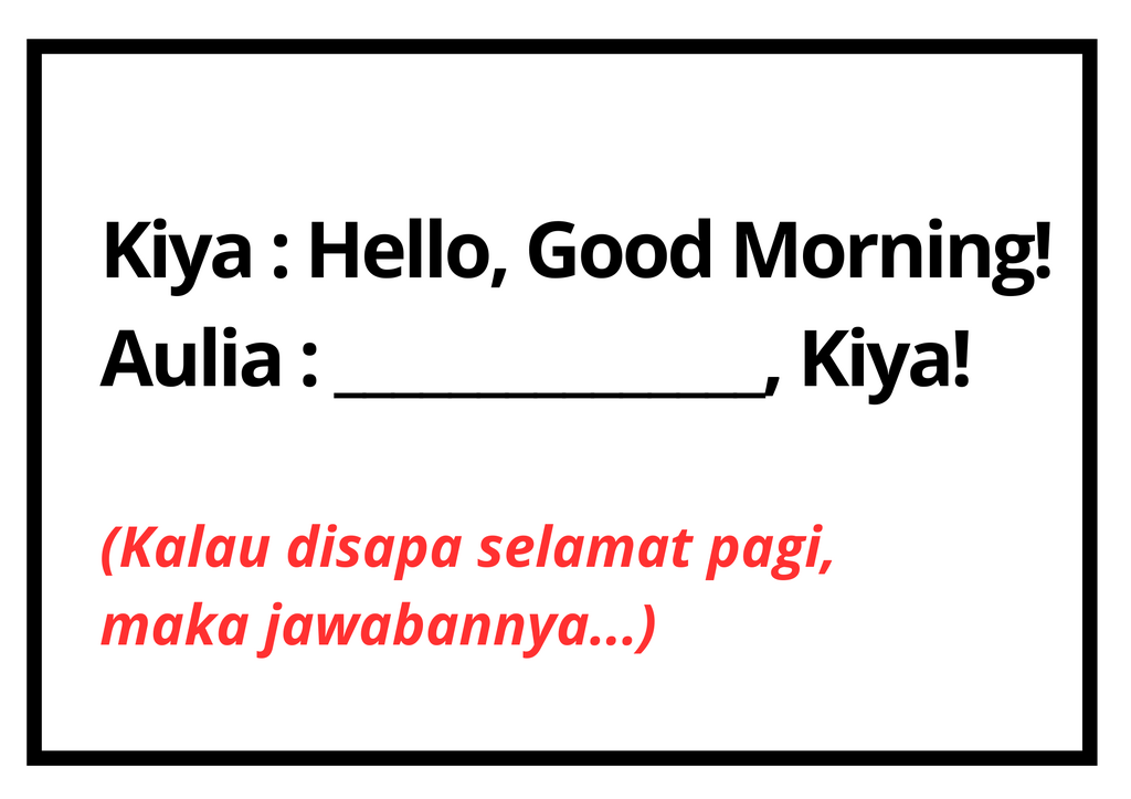 Froggy Jumps Bahasa Inggris Kelas 1Online version Mengenal nama-nama hewan; bilangan; dan benda di sekolah. by Silvi Athala N 1 a Six b Seven c Four 2 a Seven b Eleven c Ten 3 a 20 b 10 c 12 4 a Cow b Hen c Bee 5 a Cow b Fish c Bee 6 a Nine b Eight c Seven 7 a Rabbit b Monkey c Elephant 8 a Dog b Giraffe c Elephant 9 a Dog b Bird c Duck 10 a Three sharpeners b Four sharpeners c Two sharpeners 11 a Cat b Duck c Horse 12 a Two rulers b Four rulers c Fourteen rulers 13 a Cat b Rabbit c Ant 14 a Good Morning b Good Night c Good Bye 15 a Ruler b Eraser c Sharpener 16 a Ruler b Pencil c Pen 17 a Six b Five c Seven 18 a Avocado b Pineapple c Guava 19 a Cow b Hen c Rooster 20 a Three books b Two books c Four books 21 a Pencil b Eraser c Pen 22 a I don't b I do c I like