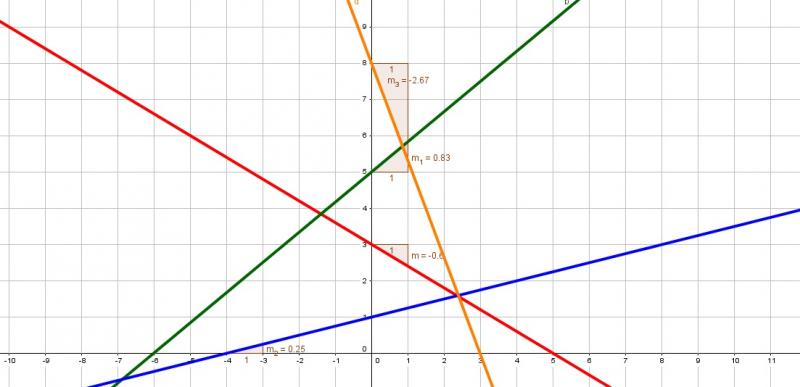 Ecuación ordinariaOnline version Relaciona las ecuaciones ordinarias de la recta con su grafica by JORGE SOBERANES 1 y=-3/5x+3 2 y=5/6x+5 3 y=1/4x+1 4 y=-8/3x+8