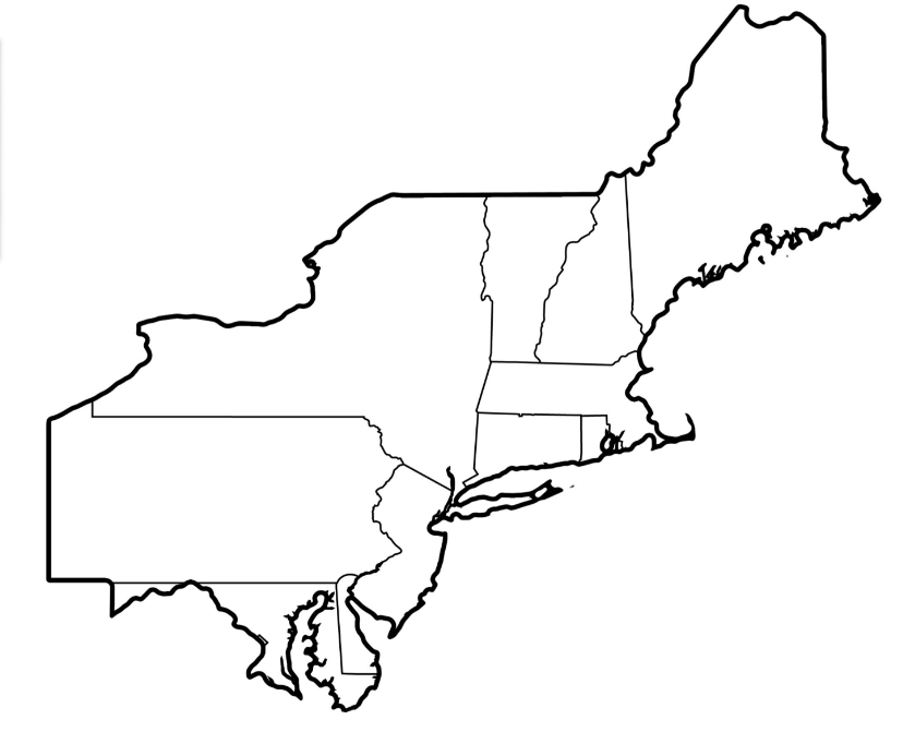 Northeast Region US StatesOnline version 11 states by Alyssa Currington 1 Maine 2 New Hampshire 3 Vermont 4 New York 5 Massachusetts 6 Rhode Island 7 Connecticut 8 Pennsylvania 9 New Jersey 10 Delaware 11 Maryland
