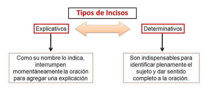 INCISOS GRAMATICALESOnline version Uso de incisos gramaticales en la escritura de micro-redacciones by Angela Lucía Cortés-P. 1 Definición de Incisos Un inciso es una expresión que se incluye en una frase, oración o texto para complementar el discurso.Se distinguen incisos explicativos e incisos determinativos (también llamados especificativos). 2 Incisos Explicativos Los incisos explicativos, interrumpen momentáneamente la oración para agregar una explicación. estos incisos, cortos o largos, no cambian el sentido de la oración; solamente lo explican, complementan o amplían.Comúnmente se encierran entre comas o se preceden de coma (cuando caen al final de la oración). en lugar de comas, también es factible utilizar rayas o paréntesis. el grado de separación del inciso explicativo aumenta de comas a rayas y de rayas a paréntesis. las rayas destacan más el inciso que las comas y los paréntesis 3 Incisos Determinativos Los incisos explicativos, no se encierran entre comas ni se preceden de coma; tampoco admiten el uso de rayas o de paréntesis. Son indispensables para identificar plenamente el sujeto y dar sentido completo a la oración. 4 Utilización de Incisos 5 Ejemplo de Uso de Incisos