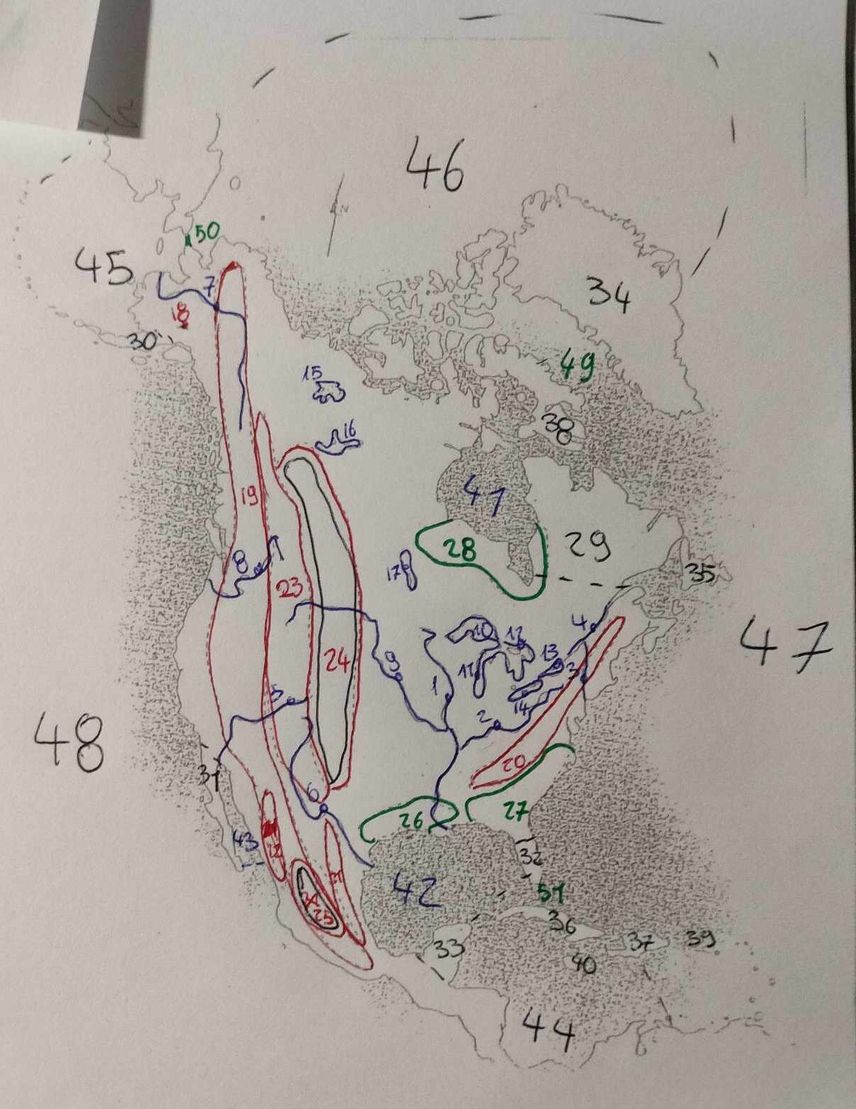 mapa fizyczna Ameryka północnaOnline version mapa fizyczna Ameryka północna by patryk 1 Ocean arktyczny 2 morze Beringa 3 Cieśnina Beringa 4 Aleuty 5 Półwysep alaska 6 Denali 7 Jukon 8 Wielkie Jezioro Niedźwiedzie 9 Grenlandia 10 Cieśnina Davisa 11 Ziemia Baffina 12 Wielkie jezioro Niewolnicze 13 Zatoka Hudsona 14 Labrador 15 Nizina Hudsona 16 Nowa Fundlandia 17 Kordyliery 18 Columbia 19 Wulkan Rainier 20 Winnipeg 21 Missouri 22 Góry Skaliste 23 Wielka równina Prerii 24 Wielka Pustynia Słona 25 Kolorado 26 Mohave 27 Półwysep Kalifornijski 28 Zatoka Kalifornijska 29 Sierra Madre Zachodnia 30 Rio Grande 31 Sierra Madre Wschodnia 32 Wyżyna Meksykańska 33 Wulkan Paricutin 34 Wulkan Popokatepetl 35 Wulkan Orizaba 36 Wulkan Mauna Loa 37 Ocean Spokojny 38 Morze karaibskie 39 Półwysep Jukatan 40 Zatoka Meksykańska 41 Nizina Zatokowa 42 Jamajka 43 Kuba 44 Haiti 45 portoryko 46 Wulkan Montagne Pelee 47 Cieśnina Florydzka 48 Floryda 49 Nizina Atlantycka 50 Appalachy 51 Missisipi 52 Ohio 53 Hudson 54 św. wawrzyńca 55 Michigan 56 Jezioro Górne 57 Jezioro Huron 58 Ontario 59 Erie 60 Ocean Atlantycki