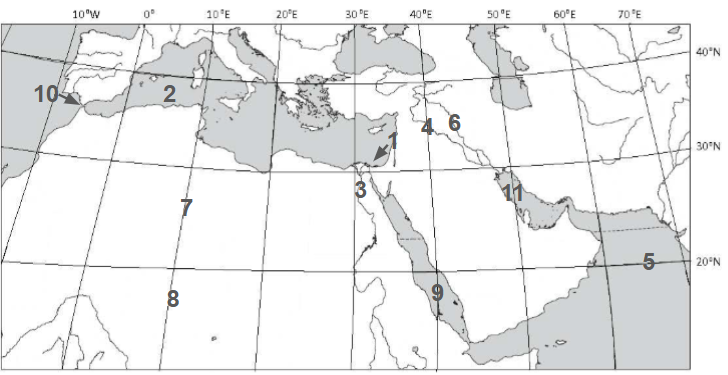 SWANA Physical Geography Map ChallengeOnline version SWANA Physical Geography Map Challenge by Heather Sanders 1 Straight of Gibraltar 2 Mediterranean Sea 3 Sahara Desert 4 Sahel 5 Arabian Sea 6 Tigris River 7 Euphrates River 8 Persian Gulf 9 Red Sea 10 Suez Canal 11 Nile River