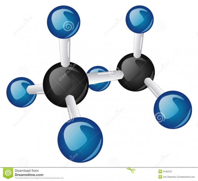 Pero el carbono puede enlazarse con otros átomos de carbono adicionalmente al hidrógeno tal como se ilustra en el siguiente dibujo de la molécula etano.