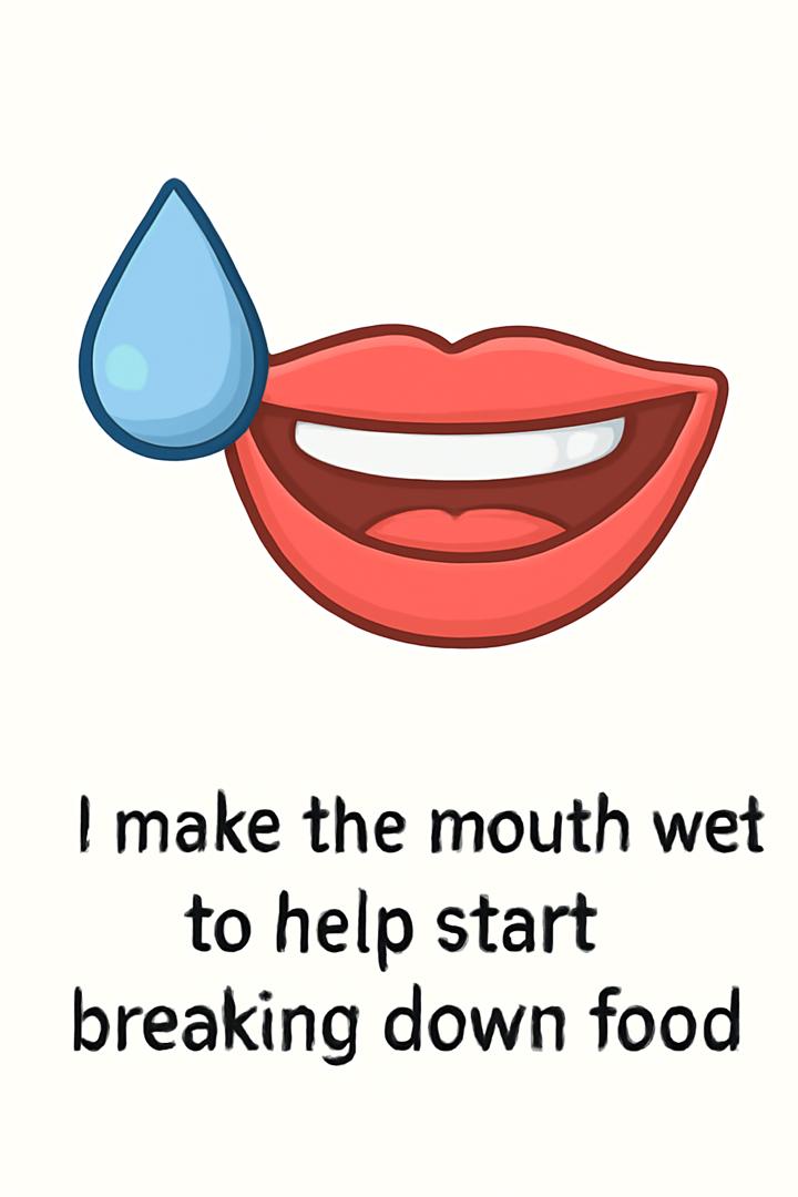 "Mystery of the Digestive System"Online version “Let’s play ‘Guess the Digestive Part!’ I’ll give you cool clues, and you get to figure out what part I’m talking about. Are you up for the challenge? Let’s see who’s the ultimate gut guru!” by NUR SYAFIQAH MOHD SAAD 1 Make saliva to help soften food and begin breaking it down. 2 A mini gate with a sign: “Food Only This Way! 3 “I’m a tube that carries food from your throat to your stomach.” 4 “I’m a big organ that makes a special juice called bile to help digest fats.” 5 “I make juices that help break down food in your stomach.” 6 “I’m like a blender that churns food and breaks it down with acid.” 7 “I take water out of leftover food and turn it into poop.” 8 “I’m a small pouch where the small and large intestines meet.” 9 “I’m a tiny tube attached to the large intestine, not much used but might help fight germs.” 10 “I store poop until it’s ready to leave your body.”