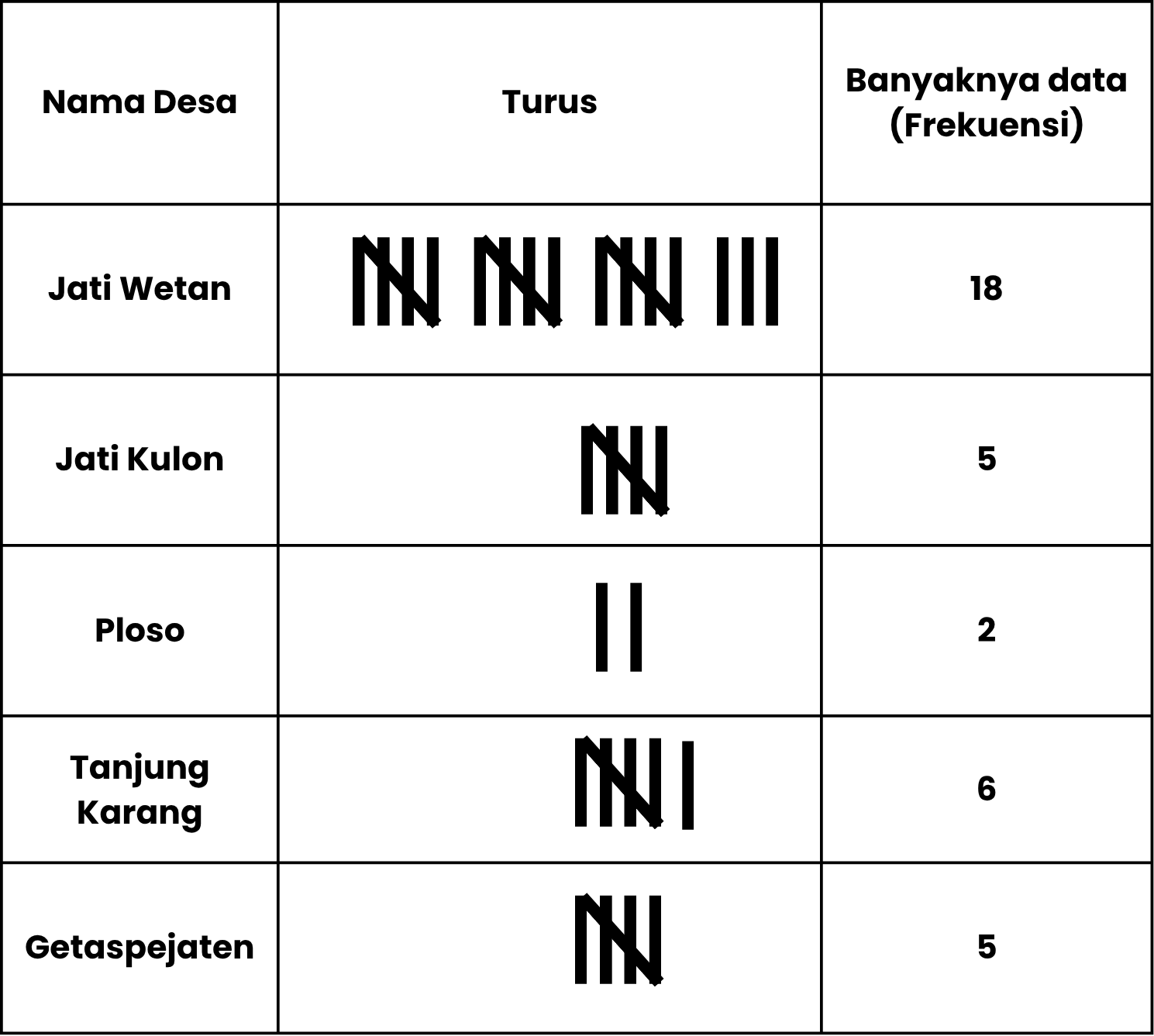 Froggy Jumps Penyajian data tabel dan piktogramOnline version untuk peserta didik kelas 3 semester 2 by Risa Amalia 1 Perhatikan data tersebut! Berapa selisih peserta didik yang suka jenang dan sop kudus? a 5 b 1 c 6 2 Berapa jumlah peserta didik yang suka dengan Soto Kerbau dan Lentog Tanjung? a 4 b 6 c 3 3 Berapa jumlah peserta didik yang suka parijoto dan sop kudus? a 3 b 1 c 2 4 Berapa jumlah peserta didik yang menjawab Jati Wetan Getaspejaten? a 18 b 10 c 23 5 Berapa jumlah peserta didik yang menulis Ploso dan Tanjung Karang? a 8 b 6 c 2