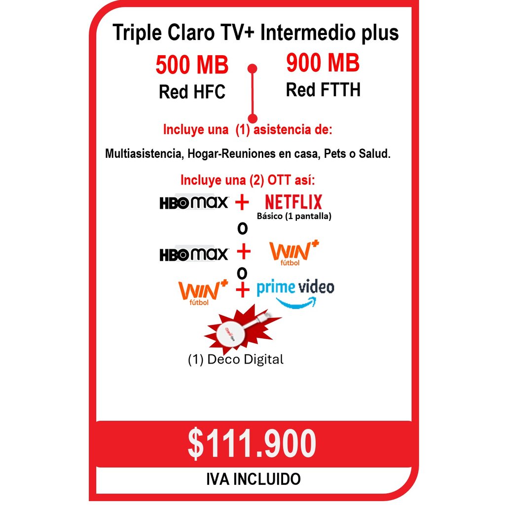 SI O NO MARINO???Online version Preguntas de refuerzo by JORGE RUEDA CANO 1 Nuestros clientes podrán disfrutar sin costo adicional de los siguientes canales en alta definición con esta aplicación Premium 6 canales HD Sí No 2 Los nuevos ciclos de facturacion aplican por igual en segmentos Pyme Sí No 3 La oferta de $136.900 ya no incluye deco box ahora se cambia por deco HD Sí No 4 LDI facilita la comunicación desde línea fija con personas que estén en otros países. Existen planes Hogar 30 minutos LDI a fijos en USA, Canadá, Venezuela, España y 16 países más a través del 00456 Sí No 5 The Walking Dead se lanza el 30 de Julio por el canal AMC frecuencias 707 y 1707 Sí No 6 El Deco Digital es un adaptador de video que convierte un televisor en Smart TV. Permite descargar aplicaciones, dar comandos por voz a través del control remoto Precio Total: $180.000 (incluye IVA) Sí No 7 Es un programa que entrega beneficios exclusivos a clientes activos de Claro: descuentos y beneficios en marcas aliadas, alianzas con bancos, beneficios en productos propios de Claro Sí No 8 Si la oferta tiene 2 OTT esta combinación aplicaría, si el cliente lo pide Sí No 9 En esta oferta el usuario podrá llevar 2 OTT combinadas de cualquier forma.... Sí No 10 El costo del Claro TV+ es de $3.900 y el usuario puede acceder a 2 pantallas. Sí No 11 En este aplicativo el cliente tendra contenido para adultos, primer mes gratis y 2 meses al 50% Sí No 12 El costo del DTH Televisión Básica en Leticia es de $54.900 Sí No 13 Lo nuevo de Amazon es que todas las compras y envíos serán gratis Sí No 14 La oferta de $111.900 incluye campaña con prorrateo y 3 meses con el 40% de descuento Sí No 15 Si un usuario tiene una OT cerrada entre el 10 y 16 del mes en curso tendrá corte 17 Sí No