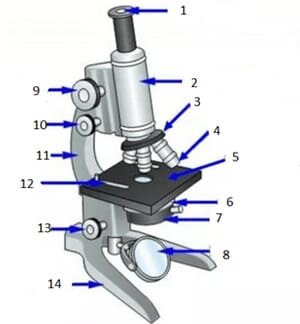 Bagian Mikroskop dan FungsinyaOnline version Jawablah dengan klik bagian yang ditunjuk sesuai fungsinya by Etik Panca Kusuma Wardani 1 Kondensor 2 Lensa Objektif 3 Sendi Inklinasi 4 Lensa Okuler 5 Makrometer 6 Tabung Mikroskop 7 Cermin 8 Meja Preparat 9 Mikrometer 10 Kaki mikroskop 11 Diafragma 12 Lengan mikroskop 13 Penjepit 14 Revolver
