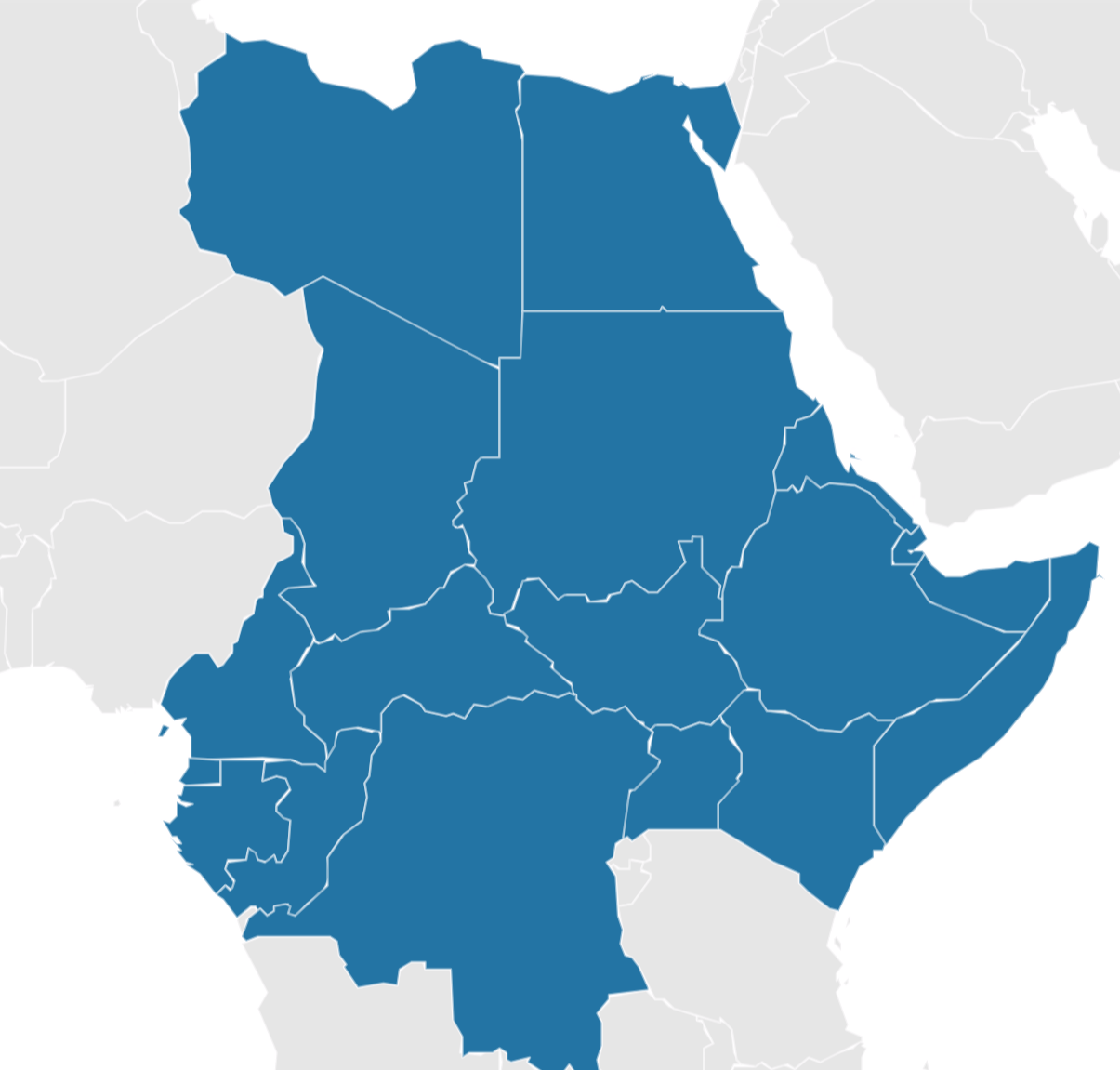 Middle AfricaOnline version Countries in Middle Africa by Lindsay Robichaux 1 Lybia 2 Egypt 3 Chad 4 Sudan 5 Cameroon 6 Central African Republic 7 South Sudan 8 Ethiopia 9 Eritrea 10 Djibouti 11 Somalia 12 Kenya 13 Uganda 14 Democratic Republic of the Congo 15 Republic of the Congo 16 Gabon 17 Equatorial Guinea 18 São Tomé and Príncipe