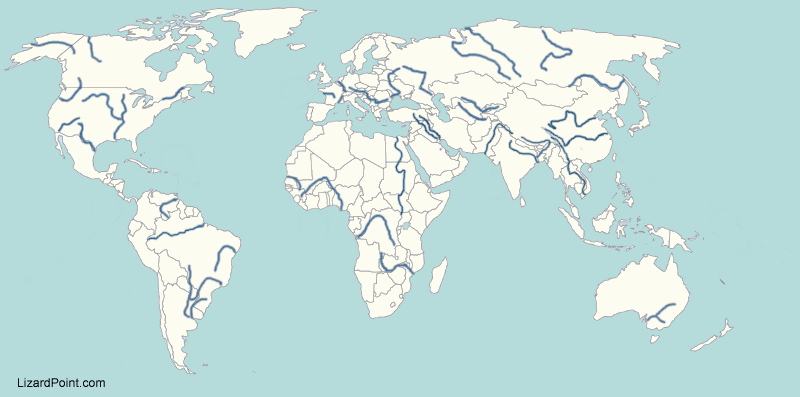 Bodies of Water World MapOnline version Rivers, Oceans, Seas, Gulfs around the world by Samantha 1 Mississippi River 2 Amazon 3 Rhine River 4 Nile River 5 Ganges River 6 Danube River 7 Vloga River 8 Indus River 9 Yangteze River 10 Tirgis River 11 Euphrates River 12 Atlanic Ocean 13 Indian Ocean 14 Pacific Ocean 15 Arctic Ocean 16 Persain Gulf 17 Mediterranean Sea 18 Red Sea