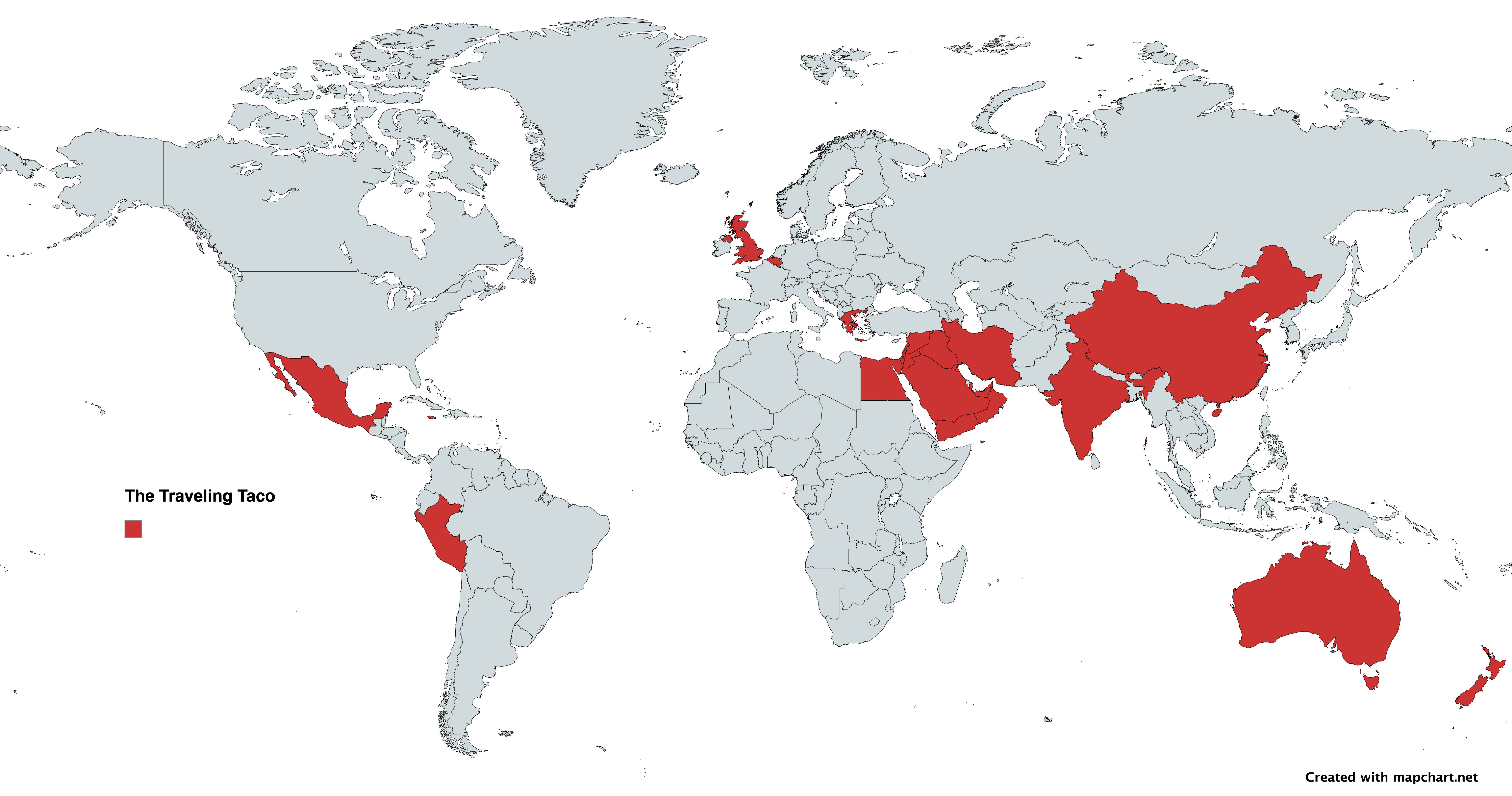The Traveling Taco GAME by Mia WenjenOnline version Take the QUIZ about the amazing and surpising journey of some of your favorite foods! by Mia Wenjen 1 Peru - Ceviche 2 China - Pasta 3 Mexico - Al Pastor Taco 4 Greece - Cheesecake 5 Australia & New Zealand - Pavlova 6 Belgium - French Fries 7 England - Fish and Chips 8 China - Ice Cream 9 Jamaica - Jerk Chicken 10 India - Rice Pudding 11 Egypt - Pizza 12 Middle East - Churro Explanation 1 Ceviche is raw seafood marinated in lemon or lime juice and flavored with onions, chile peppers, and spices. 2 Italians have created more than 1,300 pasta shapes! 3 The Al Pastor taco is just one of many kinds of tacos in Mexico. 4 Arnold Ruben, a New York dairy farmer, is credited with creating New York style cheesecake in 1920. 5 Food scholars believe that pavlova dates back to a souffle cake created in the 1770s in Austria. 6 France also claims the "French Fry" as their own. Belgium is petitioning UNCESO to recognize the French Fry a cultural treasure of Belgium. 7 Thomas Jefferson tried Jewish fish and chips when he visited London. 8 The Chinese ice cream was made from goat, cow, or buffalo milk heated with flour. It food for the emperors! 9 An escaped tribe of enslaved Africans, later called the Maroons, smoked pigs in underground pits using the Taino jerk seasoning. 10 Sombi is a rice pudding that originated in Senegal. 11 Every year, more than 5 billion pizzas are consumed around the world! 12 The churro is a kind of doughnut.