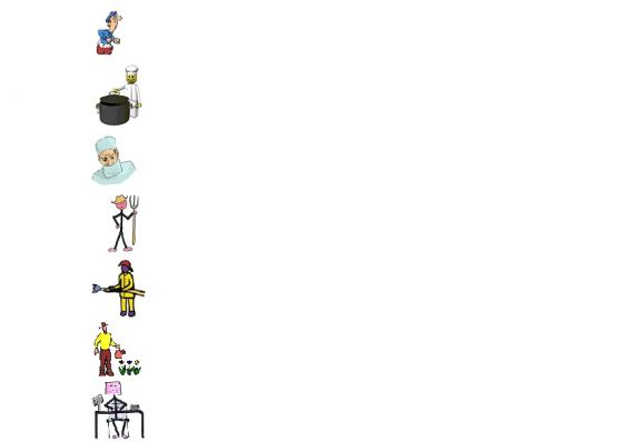 Find the job.Online version Link the picture with the word. by Sílvia Varela 1 Delivers letters. 2 Uses a mask and forceps. 3 Cooks meals. 4 Deals with paper work. 5 Puts out a fire. 6 Works in a farm. 7 A garden is his working place.