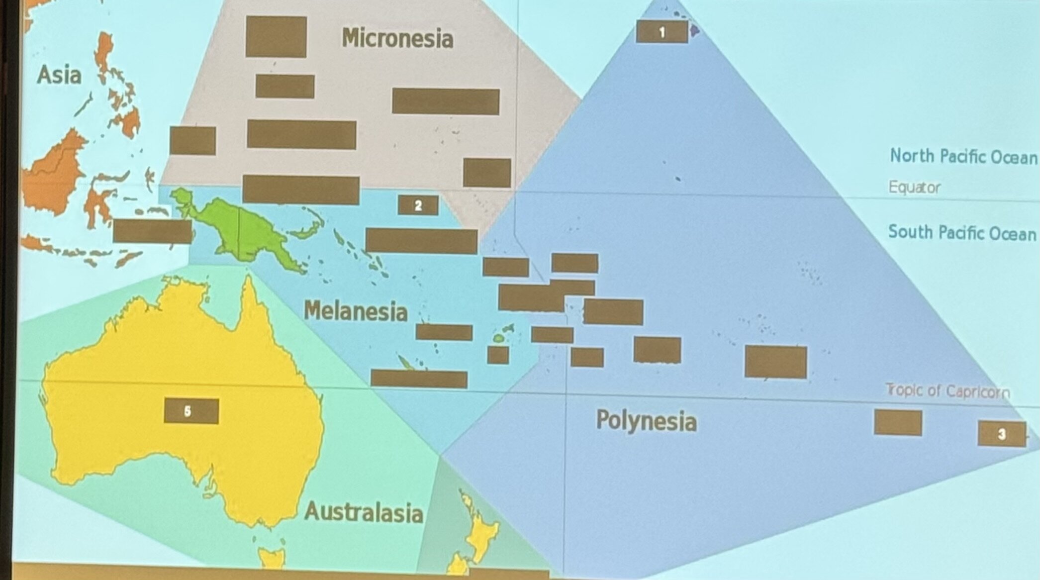 Oceania Map QuizOnline version Map quiz helping for unit 2 of my Globalization course. by James Best 1 Northern Mariana Islands 2 Guam 3 Marshall Islands 4 Federated States of Micronesia 5 Palau 6 Papua New Guinea 7 Kiribati 8 Hawaii 9 Nauru 10 West Papua 11 Soloman Islands 12 Vanuatu 13 Tuvalu 14 Fiji 15 New Caledonia 16 New Zealand 17 Australia 18 Wallis & Futuna 19 Tokelau 20 Samoa 21 American Samoa 22 Tonga 23 Niue 24 Cook Islands 25 French Polynesia 26 Pitcairn Islands 27 Easter Island