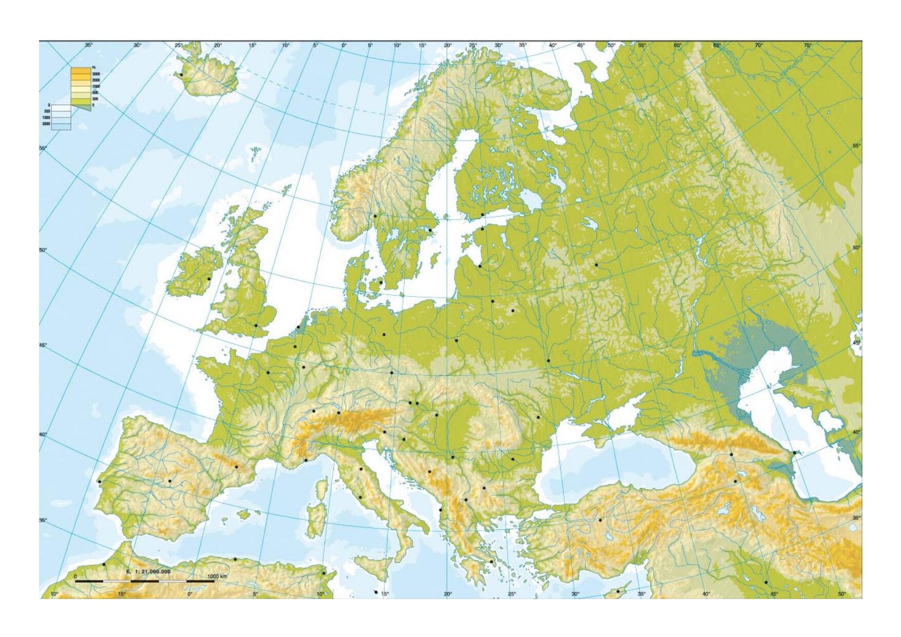 Rivers and seas of EuropeOnline version Rivers and seas of Europe by Almudena Montero Sastre 1 Loire 2 Garonne 3 Seine 4 Po 5 Tíber 6 Rhine 7 Danube 8 Elbe 9 Oder 10 Vistula 11 Dniester 12 Dnieper 13 Don 14 Volga 15 Ural 16 Thames 17 Strait of Gibraltar 18 English channel 19 Tyrrhenian Sea 20 Adriatic sea 21 Aegean Sea 22 Ionian Sea 23 Mediterranean Sea 24 Black Sea 25 Sea of Azov 26 Caspian Sea 27 North Sea 28 Norwegian Sea 29 Baltic Sea 30 Barents Sea 31 White Sea