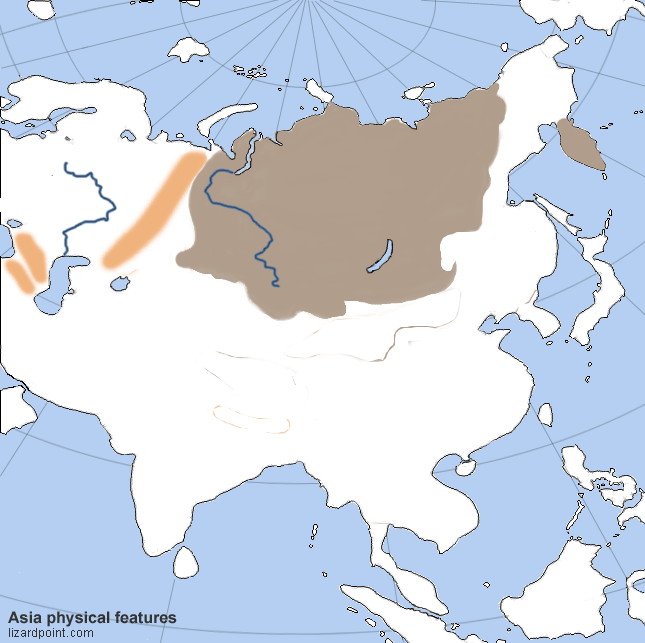 Russia Physical Map QuizOnline version HGAP Unit 4 by Hailey Velevis 1 black sea 2 north european plain 3 Caucasas mountains 4 caspian sea 5 volga river 6 aral sea 7 ural mtns 8 lake baikal 9 lena river 10 bering strait