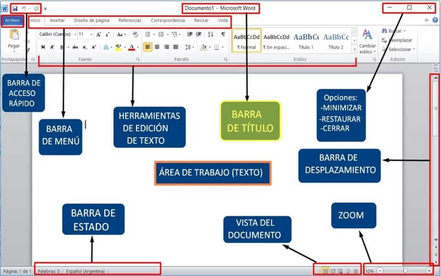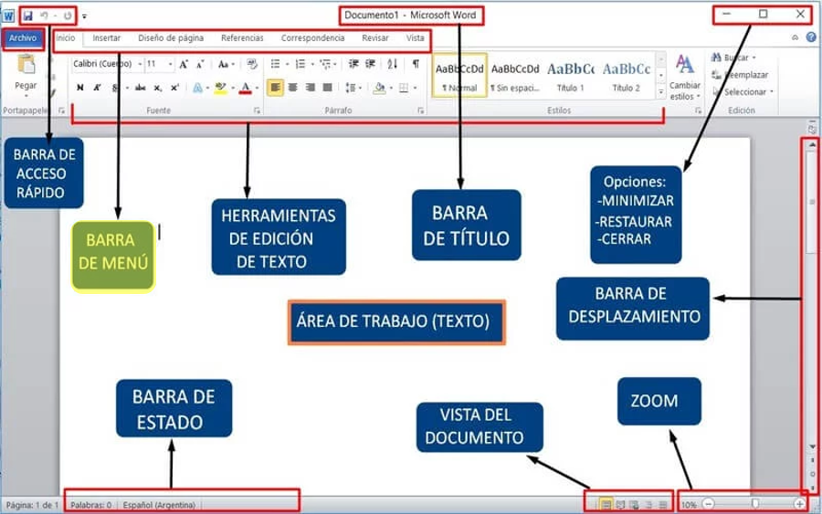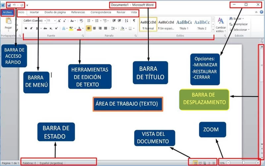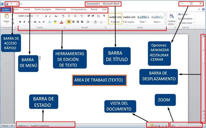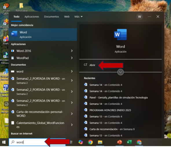 RECONOCIENDO EL ESCRITORIO DE MICROSOFT WORDOnline version Los principales elementos que te van a permitir usar Microsoft Word. by CONECTA-TEC 1 PRESENTACIÓN ¡Hola! 🖐 que tal jóvenes del "CAVM". Hoy vamos a revisar 2 breves pero elementales temas:1.- Los 3 principales métodos para abrir cualquier aplicación o programa informático en un equipo de cómputo. 2.- Los principales elementos que te van a permitir usar Microsoft Word.Cooooomencemos... 2 MÉTODO PARA ABRIR CUALQUIER APLICACIÓN O PROGRAMA INFORMATICO EN UN EQUIPO DE CÓMPUTO Existen diversas formas de hacerlo, las 3 más comunes son:1.Cuando el icono de la app o programa se encuentra en el escritorio.2.Por medio de inicio (símbolo de Windows.3.A través de la Lupa de búsqueda. 3 ABRIR EL PROGRAMA DE OFIMÁTICA “WORD” Cuando el icono “SI” esta en el escritorio de la computadora; haz doble clic izquierdo sobre él.OJO: Realiza el ejercicio en tu computadora 4 ABRIR EL PROGRAMA DE OFIMÁTICA “WORD” Cuando el icono “NO” esta en el escritorio de la computadora; da clic izq. sobre “inicio” (símbolo de Windows), desplázate hacia abajo hasta encontrar el programa y da doble clic izq.OJO: Realiza el ejercicio en tu computadora 5 ABRIR EL PROGRAMA DE OFIMÁTICA “WORD” Cuando el icono “NO” esta en el escritorio de la computadora; da clic izq. sobre la lupa de búsqueda escribe “Word” y da clic en Abrir.OJO: Realiza el ejercicio en tu computadora 6 RECONOCIENDO EL ESCRITORIO DE MICROSOFT "WORD" Estos son los principales elementos que te van a permitir usar Microsoft "Word". 7 ÁREA DE TRABAJO Es el espacio donde vamos a escribir. Tiene la apariencia de una hoja en blanco. Allí aparecerá todo lo que vayamos creando. 8 BARRA DE ACCESO RÁPIDO Son los tres iconos que nos permiten hacer tres acciones rápidas (Guardar, Deshacer y Rehacer).Guardar.-Permite ir guardando el archivo durante su elaboración o al terminarlo.Deshacer.-Da la posibilidad de deshacer algún cambio hecho.Rehacer.-Da la posibilidad de rehacer algún cambio hecho. 9 BARRA DE MENÚ Es el conjunto de pestañas que nos va a permitir trabajar sobre diferentes elementos del archivo. Siempre, por defecto, estaremos trabajando en la pestaña Inicio, la cual cuenta con todas las funciones básicas y principales. 10 HERRAMIENTAS DE EDICIÓN DE TEXTO Todas las herramientas para editar el texto. Por ejemplo: subrayar, resaltar, cambiar el color y tamaño, entre otras cosas. 11 BARRA DE TÍTULO Éste es el espacio donde aparecerá el título del archivo sobre el que estamos trabajando. Es el nombre que le dimos al archivo al guardarlo, mientras no lo guardemos solo dirá “Documento”. 12 BARRA DE ESTADO Esta área nos indica la cantidad de palabras que llevamos escritas y el estado del archivo (si acaba de guardarse, por ejemplo, se indica en ese espacio). 13 VISTA DEL DOCUMENTO Son las diferentes opciones que ofrece Word para ver el documento en la pantalla. 14 BARRA DE DESPLAZAMIENTO Es lo que nos permite movernos hacia arriba y hacia abajo en el archivo. La usamos haciendo clic en las flechitas. 15 ZOOM Nos permite alejar o acercar el área de trabajo para verlo más o menos grande. 16 TAREA Imprimir la imagen y pegarla en su libreta.