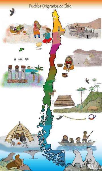 Mapa InteractivoOnline version Ubica en el Mapa los Pueblos Originarios que se indican by Claudia Andrea Céspedes Lueiza 1 Aymara 2 Rapa Nui 3 Diaguita 4 Mapuches 5 Changos 6 Yagán 7 Kawésqar 8 Chonos 9 Onas 10 Atacameños