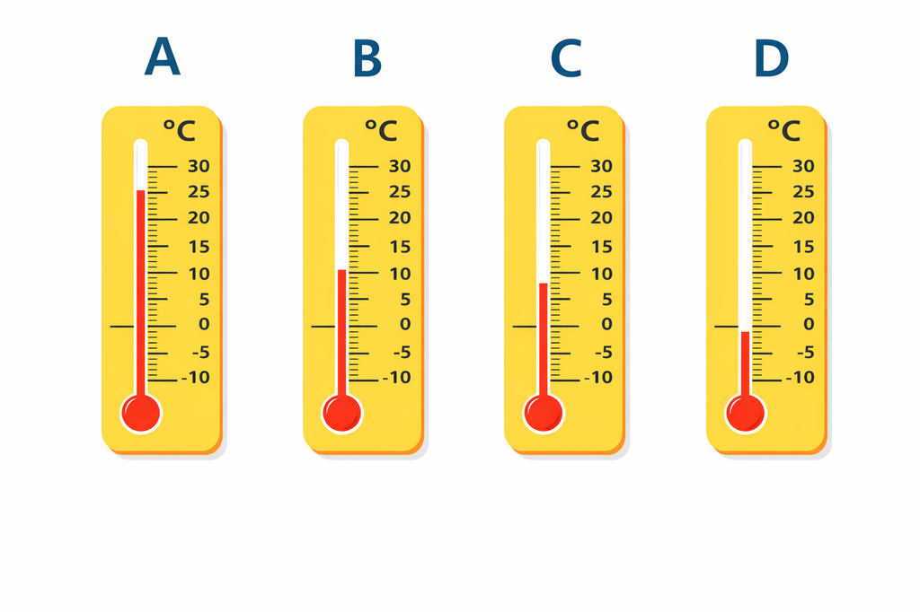 W.O. - Na regen komt zonneschijn (quiz deel 2)Online version Quiz deel 2: Na regen komt zonneschijn by juf Axane 1 Welke temperatuur is het warmste? a -1°C b 3°C c 8°C d -4°C 2 Welke temperatuur is het koudste? a -1°C b 3°C c 8°C d -4°C 3 Welke temperatuur is het koudste? a -1°C b -5°C c -12°C d -9°C 4 Hoe warm is het op thermometer C? a 8°C b 5°C c 7°C d 9°C 5 Hoe warm is het op thermometer D? a 1°C b 0°C c -1°C d -2°C 6 Welke thermometer past het beste bij de zomer? a A b B c C d D 7 Welke thermometer past het beste bij de winter? a A b B c C d D 8 Wanneer er veel bewolking is, komen er ... zonnestralen op het aardoppervlak. Het is dan ... Kies één of meerdere antwoorden a veel b weinig c kouder d warmer 9 Water kan in 3 vormen voorkomen: vast, vloeibaar en ... ? Welke vorm ontbreekt? Geschreven antwoord 10 De verschillende vormen van water noemen we: water, waterdamp en ... ? Welke naam ontbreekt? Geschreven antwoord 11 Hoe noemen we iemand die weersvoorspellingen maakt? a astronaut b meteoroloog c weerman d weervoorspeller 12 Voor welk van deze beroepen is het weer zeer belangrijk? a visser b secretaresse c kok d kassierster 13 Voor welk van deze beroepen is het weer minder belangrijk? a bouwvakker b piloot c postbode d leerkracht 14 Het klimaat verandert, hoe komt dat? Kies één of meerdere antwoorden a Door voertuigen die broeikasgassen uitstoten b Door het gebruiken van veel plastic verpakkingen c Door het vele vlees dat gegeten wordt d Doordat mensen thuis heel vaak een bad nemen 15 Wat zal / kan er gebeuren nu het klimaat verandert? Kies één of meerdere antwoorden a bosbranden b het zeewater warmt op en het koraal sterft af c veel droogte d veel afval 16 Hoe beschermt de egel zich tegen de koude? Hij ... a houdt een winterrust b heeft een wintervacht c houdt een winterslaap d trekt naar een warmer gebied 17 Hoe beschermt de zeehond zich tegen de koude? Hij ... a rolt vaak in het ijs b heeft een wintervacht c hij heeft een dikke vetlaag d trekt naar een warmer gebied 18 Hoe beschermt de zwaluw zich tegen de koude? Hij ... a houdt een winterrust b heeft een wintervacht c houdt een winterslaap d trekt naar een warmer gebied 19 Wat doe je beter NIET bij hevig onweer? a binnenblijven b schuilen in de auto c schuilen onder een boom 20 Welke tips zijn handig bij een hittegolf? Kies één of meerdere antwoorden a schaduw zoeken b zonnecrème smeren c een wandeling maken d veel water drinken Uitleg 2 Stel je de temperatuur voor op de getallenlijn. Begin bij 0. –1 is één stapje onder 0, –4 is vier stapjes onder 0. Omdat –4 verder onder nul ligt dan –1, is het kouder. 3 Stel je de temperatuur voor op de getallenlijn. Hoe verder je gaat onder 0, hoe kouder. 6 Thermometer A, het is 25°C. 7 Thermometer D, het is -1°C. 8 De wolken houden de zonnestralen tegen, er komen dus weinig zonnestralen tot bij ons. Hoe minder zonnestralen, hoe kouder. 13 Een leerkracht (juf of meester) geeft meestal les binnen in de klas. Daarom heeft het weer weinig invloed op zijn of haar werk. 19 Ga nooit onder bomen staan, die kunnen omvallen of takken laten vallen. 20 Het is niet slim om lange tijd te bewegen of zwaar werk te doen in de zon. Dit verhoogt het risico op een zonneslag, je wordt dan heel erg ziek.