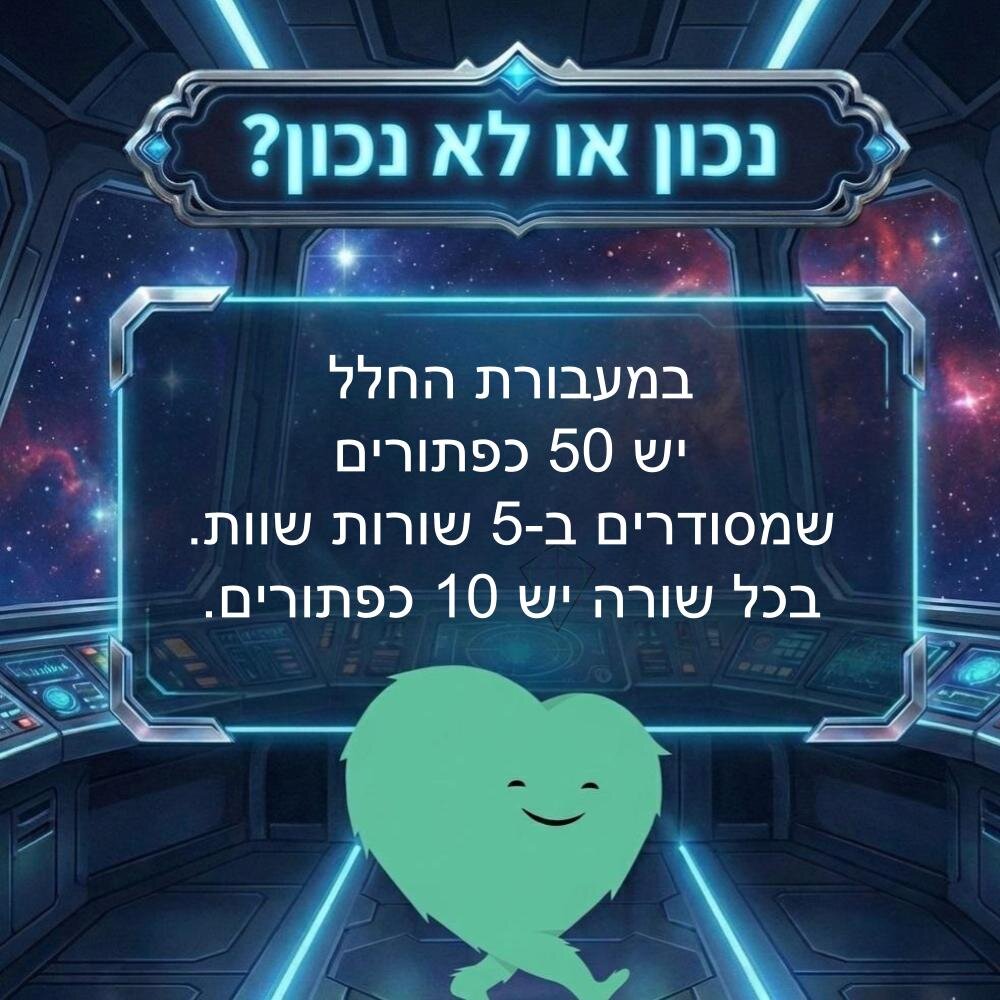 כפל וחילוק עד 100Online version נכון או לא נכון by pini levy 1 Yes No 2 Yes No 3 Yes No 4 Yes No 5 Yes No 6 Yes No 7 Yes No 8 Yes No 9 Yes No 10 Yes No 11 Yes No 12 Yes No 13 Yes No 14 Yes No