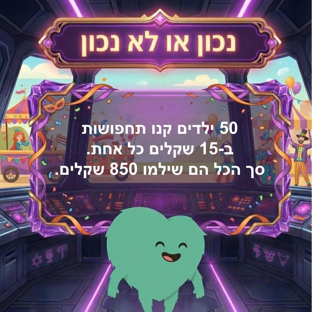 נכון או לא נכון - כפל וחילוק מיוחד לפוריםOnline version האם המשפט נכון או לא נכון by pini levy 1 Yes No 2 Yes No 3 Yes No 4 Yes No 5 Yes No 6 Yes No 7 Yes No 8 Yes No 9 Yes No 10 Yes No 11 Yes No 12 Yes No 13 Yes No 14 Yes No 15 Yes No 16 Yes No 17 Yes No 18 Yes No