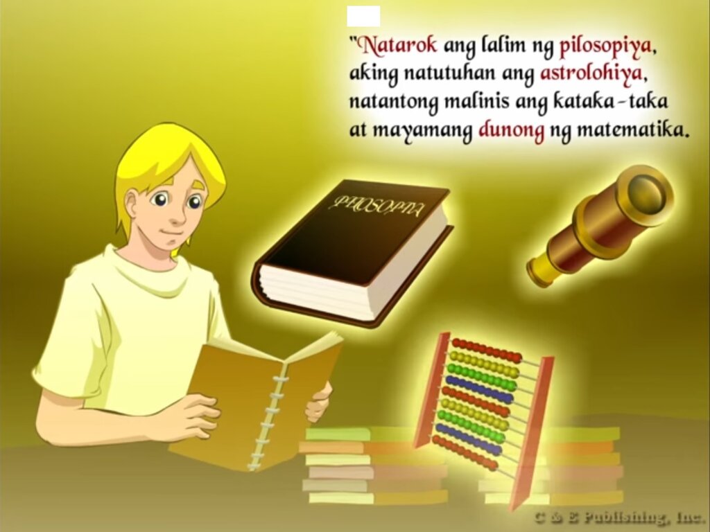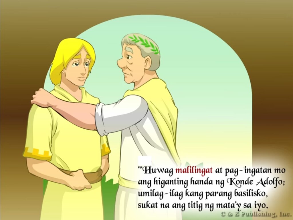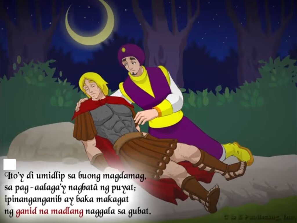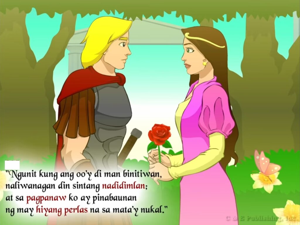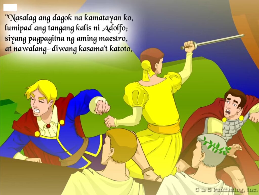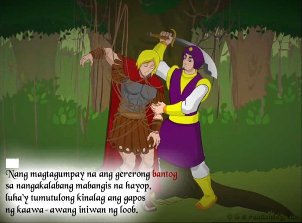 Kronolohiko: Florante at AladinOnline version Pagsunud-sunurin ang mga pangyayari sa Florante at Laura. by Arne Fadul 1 Pagliligtas ni Aladin kay Florante Pinutol ni Aladin ang lubid na nakagapos sa katawan ni Florante. Aakmain na ng mga leon si Florante ngunit pinagtataga ito ni Aladin. Muling nanumbalik ang lakas ni Florante. Magdamag binantayan ni Aladin ang binata dahil sa pangambang makagat ng mga hayop na pagala-gala. Nabigla si Florante nang magising siya kasama na ang Morong si Aladin. 2 Pagkabata ni Florante Bata palang ay mahilig na siyang mamana at labis nitong hinahangaan ang kariktan ng kalikasan. Dinagit ng buwitre ang batang Florante at nakuha ang kanyang diyamanteng kwintas. Naging kamag-aral ni Florante si Adolfo noon sa Atenas. Subalit hindi palagay ang loob nila sa isa't isa. Si FLorante ay anak ni Prinsesa Floresca at Duke Briseo na pribadong tagapayo ni Haring Linceo ng Albanya. Hindi ninais ni Duke Briseo na manatili sa tamis ng layaw si Florante kaya ipinadala nita ito sa Atenas upang doo’y tumuklas ng karunungan sa patnubay ng gurong si Antenor. 3 Buhay sa Atenas Sa kanilang dula sa eskwela, inatake at akmang papatayin ni Adolfo si Florante. Nakatanggap siya ng isang liham mula sa kaniyang ama na nagbabalitang ang kaniyang ina ay yumao na. Lumipas ang anim na taon at nalampasan ni Florante ang talino’t karunungan ni Adolfo. Pinabalik ng Albanya si Adolfo. Iniligtas ni Menandro si Florante. 4 Pagbabalik ni Florante Nagtungo sa Palasyo Real ang mag-ama at inihandog ng duke ang paglilingkod ng anak. Pinayagan ni Antenor ang kaniyang pamangkin na si Minandro na sumama kay Florante sa paglalakbay. May iniabot itong liham na nagsasabing ang hari ng Krotona ay humihingi ng tulong dahil sila ay napapaligiran ng hukbo ni Heneral Osmalik ng Persiya. Sa Albanya ay agad silang sinalubong ng ama ni Florante na si Duke Briseo. Bago tuluyang umalis si Florante pabalik sa kaharian ng Albanya ay nagbilin ang kaniyang maestro na si Antenor na mag-ingat sa higanting handa ni Konde Adolfo. 5 Si Laura Halos bumagsak na ang kuta ng Krotona dahil sa walang humpay na pag-atake ng mga hukno ni Heneral Osmalik. Inabot ng limang oras ang pagtutunggalian ng dalawa hanggang sa mapatay ni Florante si Heneral Osmalik. Habang nag-uusap ay lumapit ang anak ng hari na si Laura at nakiumpok sa kanila. Nabihag muli ang puso nito sa dalagang kapantay ni Venus sa ganda. Hinangaan ng Haring Linceo ang kakisigan ni Florante at sinabing ang binatang iyon ang gererong nakita niya sa kaniyang panaginip na siyang magtatanggol sa kaharian. Ipinagtapat ni Florante na mahal pa rin niya si Laura. Bagaman nanatiling tahimik si Laura ay bakas naman sa mga mata nito ang luha na siyang pabaon niya kay Florante.