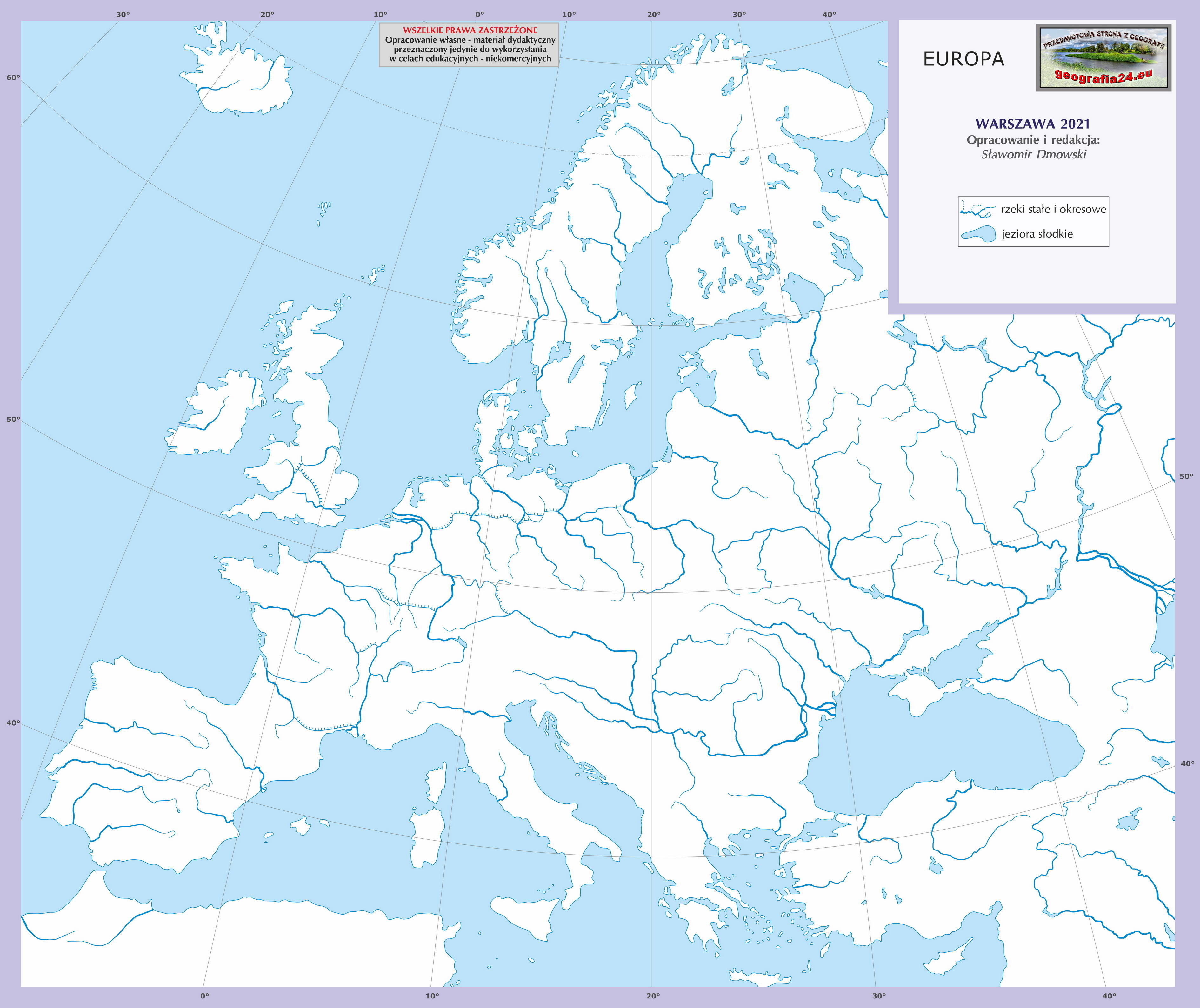Rzeki i Jeziora EuropaOnline version mapówka tylko rzeki i jeziora by Weronika 1 Shannon 2 Tamiza 3 Tag 4 Duero 5 Ebro 6 Sekwana 7 Loara 8 Rodan 9 Pad 10 Jezioro Genewskie 11 Jezioro Bodeńskie 12 Ren 13 Łaba 14 Dunaj 15 Drawa 16 Sawa 17 Tyber 18 Odra 19 Warta 20 Bug 21 Wisła 22 Niemen 23 Dniestr 24 Dniepr 25 Zbiornik Krzemieńczucki 26 Don 27 Wołga 28 Kama 29 Oka 30 Dźwina 31 Jezioro Pejpus 32 Zbiornik Rybiński 33 Onega 34 Jezioro Ładoga 35 Jezioro Onega 36 Jezioro Inari 37 Torne 38 Indals 39 Jezioro Wener 40 Jezioro Wetter 41 Glomma