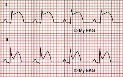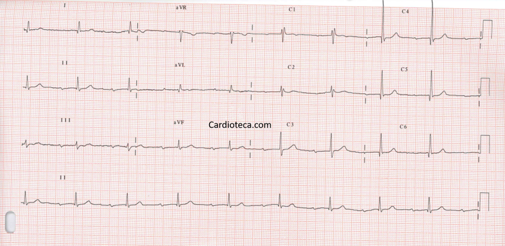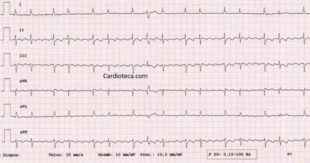 Ritmos Cardíacos y ECGOnline version Análisis de ritmos con ECGs by Pere Borrell 1 ¿Qué ritmo muestra un ECG con QR irregular y ausencia de P? a Fibrilación atrial b Ritmo sinusal c Fibrilación ventricular d Taquicardia sinusal 2 ¿Qué ritmo sugiere un complejo QRS ancho y ritmo irregular sin ondas P definidas? a Ritmo de marcapaso b Ritmo sinusal c Fibrilación auricular d Taquicardia ventricular 3 ¿Qué ritmo indica un PR prolongado pero constante en todos los complejos? a Bloqueo AV de primer grado b Bloqueo AV de segundo grado c Taquicardia supraventricular d Ritmo nodal 4 Un segmento ST elevado sostenidamente sugiere qué situación en el ECG? a Pericarditis b Infarto agudo de miocardio c Hipertrofia ventricular d Bloqueo de rama 5 Ritmo con R-R regular y ondas P en todas las derivaciones antes de cada QRS: ¿qué ritmo es? a Ritmo sinusal b Ritmo de marcapasos c Fibrilación ventricular d Taquicardia ventricular 6 ¿Qué ritmo se caracteriza por P ausentes y QRS anchos en cada ciclo? a Ritmo sinusal b Taquicardia ventricular c Fibrilación ventricular d Asistolia 7 Qué hallazgo sugiere un bloqueo AV de segundo grado tipo Mobitz II? a Prolongación del PR sin fallos b Ondas P con cada QRS c Ritmo sinusal estable d Caídas periódicas de los QRS 8 Ritmo rápido con ondas P antes de cada QRS y frecuencia elevada: ¿qué ritmo es? a Fibrilación auricular b Fibrilación ventricular c Taquicardia sinusal d Ritmo nodal 9 a Bloqueig AV primer grau b IAM c Ritme sinusal d Fibril·lació auricular 10 a Fibril·lació auricular b Flutter auricular c Mobitz I d Mobitz II 11 Com es defineixen les ones Q patològiques en un IAM? a Aquelles que tenen una durada de més de 0,04s b Aquelles que tenen una durada de menys de 0,04s c Són petits pics previs que apareixen abans de la ona Q normal d Ones Q patològiques no són característiques de IAM 12 Què indiquen les ones Q patològiques en un IAM? a Hipertròfia ventricular b Necrosi miocàrdica c Isquèmia miocàrdica d Bloqueig AV 13 Què indica la inversió d'una ona T en un ECG? a Hipertròfia auricular b Necrosi miocàrdica c Isquèmia miocàrdica d Hipertròfia ventricular 14 Quines patologies corresponen a cadascuna de les ECG? a Superior: IAM Inferior: Pericarditis b Superior: Pericarditis Inferior: IAM c Les dos corresponen a un IAM d Les dos corresponen a una pericarditis 15 a Torsade de pointes b FV c TV monomòrfica d Flutter auricular 16 Després d'un IAM cicatritzat o en fase de cicatrització, quin tipus de patologia ens podriem trobar? a TV monomòrfica b Asistòlia c Bloqueig AV Mobitz I d Bloqueig AV Mobitz II 17 Les TV polimòrfiques sovint deriven en... a IAM b Fibril·lació auricular c Flutter d FV 18 La Torsade de Pointes es caracteritza per... a FC al voltant de 180 bpm b Interval QT llarg c Intervals RR regulars d Augment del segment PR 19 La Torsade de Pointes es caracteritza per: a QRS ample amb FC al voltant dels 200-250 bpm b Intervals RR regulars c Augment del segment ST d Ones Q patològiques 20 Els pacients amb flutter o aleteig auricular presenten risc de patir... a Asistòlia b IAMCEST c ICTUS, i se'ls administren anticoagulants orals d Ni papa 21 Podem distingir un flutter auricular a l'ECG per... a Les ones W que apareixen posteriors a QRS b FC divisòries de 300 c QRS ample d No hi ha conductivitat de les ones P 22 Un aleteig auricular... a És sinònim de IAM b És sinònim de fibril·lació auricular c Es considera l'arrítmia per excel·lència d El QRS és estret i no existeixen ones P 23 En un flutter auricular a Veurem dents de serra a II, III i avF b Veurem dents de serra V1-V4 c Veurem dents de serra a I, aVL, V5–V6 d No veurem serrangas 24 a TV monomòrfica b Ritme sinusal c Fibril·lació auricular d Flutter auricular 25 En la fibril·lació auricular... a La Fc és superior a la freqüència auricular b La Fc és inferior a la freqüència auricular c Les dues freqüències van al mateix ritme d Ni papa 26 En la fibril·lació auricular.... Escoge una o varias respuestas a Els intervals RR són totalment irregulars b Els QRS són similars al ritme sinusal c No hi ha ones P d Es poden veure ones petites de fibril·lació anomenades ones f 27 a Bloqueig AV I b Fibril·lació auricular c Flutter auricular d TV monomòrfica 28 a IAMCEST b Pericarditis c TV monomòrfica d Taquicàrdia sinusal 29 a Flutter auricular b Fibril·lació auricular c Ritme sinusal d FV 30 Escoge una o varias respuestas a FV b Torsade de Pointes c TV polimòrfica d Asistòlia 31 a Asistòlia b TV monomòrfica c Torsade de pointes d FV Explicación 14 En els dos casos observarem un augment del segment ST. Les diferències les trobarem en el segment PR (en l'IAMCEST el trobarem normal i en la pericarditis observarem un descens) i en el segment ST (en la pericarditis fa una concavitat). 19 La torsades de pointes termina frecuentemente de forma espontánea pero puede degenerar en fibrilación ventricular y a muerte súbita. 22 És sinònim de flutter auricular 25 La desorganització elèctrica de les aurícules fa que el node AV no transmeti tots els impulsos als ventricles, i per tant la FC és més baixa del que realment les aurícules es contrauen
