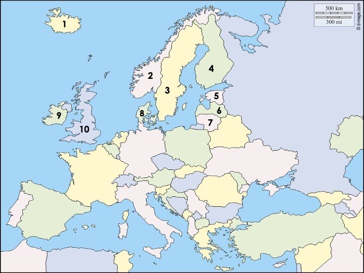 1-10 map labelOnline version 1914 Europe map by Hudson Shellenbarger 1 Iceland 2 Norway 3 Sweden 4 Finland 5 Estonia 6 Latvia 7 Lithuania 8 Denmark 9 Ireland - controlled by great britain 10 Great Britain