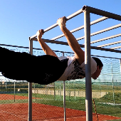 Matching Pairs Street-Workout (Calistenia)Online version Relacione los mosaico según la descripción de los diferentes trucos estáticos y dinámicos de un entrenamiento calistenia. by Angie Lopez 1 El front lever es un ejercicio que se realiza en las barras y ayuda al fortalecimiento de los músculos situados en la espalda, pecho, abdomen y brazos. En su realización se muestra la resistencia muscular de cada uno de estos sectores del cuerpo. 2 El Hefesto consiste en Pasar de posición de back lever a posición de korean dips, por delante de la barra. 3 El tiger bend consiste en Pasar de pino a pino apoyado en antebrazos y codos y volver a subir. Músculos que trabaja: hombros y tríceps 4 Academia con más numero de atleta en Colombia. 5 A diferencia de otras tendencias, la calistenia no hace rivalidad porque son 6 La full-planche es un truco que consiste en mantener el equilibrio del tronco y piernas mientras nivel de los hombros 7 Tornado 360 consiste en tomar impulso y llevar a tu cuerpo a dar un giro de 360° en las oportunidades que puedas. 8 Back-lever se lleva a cabo mediante la reducción de una invertida colgar hasta que el cuerpo del atleta se vea paralelo al suelo y mirando hacia el suelo. 9 Human flag es un estático que consiste en imitar una bandera, poniendo el tronco a un solo nivel con los brazos totalmente estirados. 10 En un HandStand básico del cuerpo se mantiene recto con brazos y piernas completamente extendidas, con las manos separadas aproximadamente el ancho de los hombros. 11 Familia del street workout más importante en la costa colombiana