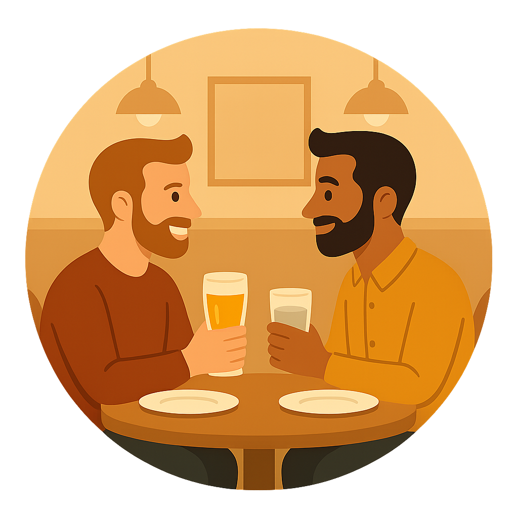 "Ja, bitte. Ich hätte gerne ein stilles Wasser und mein Freund möchte ein typisch englisches Bier."