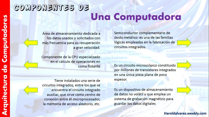 ArqPC: Elementos de una PCOnline version En este mapa encontrarás elementos constitutivos de la computadora. by Harold Alvarez Campos Ph.D 1 Memoria Cache 2 FPU 3 Placa Base 4 CMOS 5 CPU 6 Disco Duro