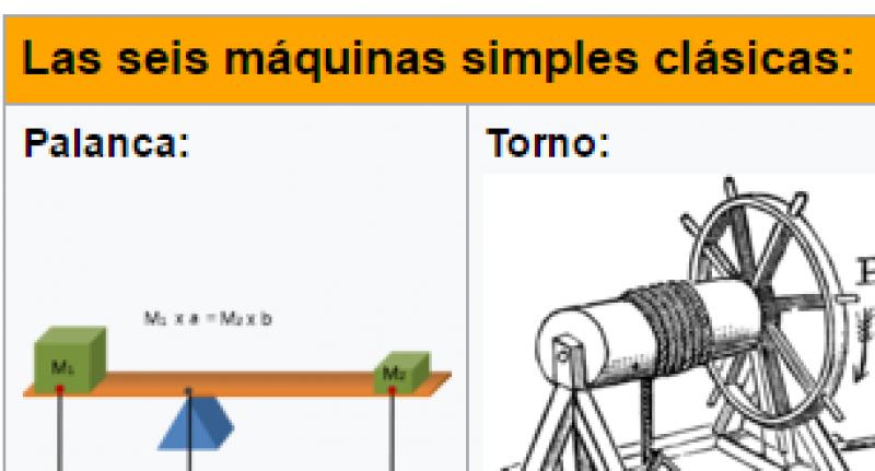 - Las máquinas compuestas generalmente son combinaciones de 6 tipos de máquinas simples: Palancas, poleas, ruedas, ejes, planos inclinados, tornillos y cuñas.