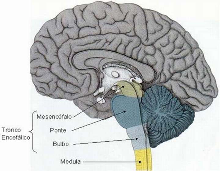 El tronco del encéfalo, tronco cerebral o tallo cerebral está formado por el mesencéfalo, la protuberancia anular (o puente troncoencefálico) y el bulbo raquídeo (también llamado médula oblongada).