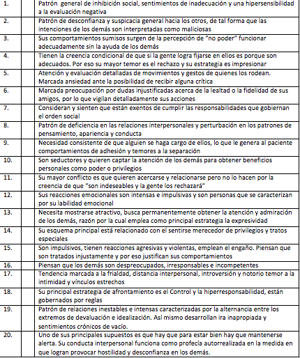 Trastornos de personalidadOnline version En esta actividad deberán escribir en el cuadro que está antes de cada una de las siguientes características y perfiles cognitivos el nombre del trastorno que le corresponde. (Deberán escribir el nombre completo de cada trastorno por ej trastorno límite de la personalidad) by Sara Velasquez 1 2 3 4 5 6 7 8 9 10 11 12 13 14 15 16 17 18 19 20 1 2 3 4 5 6 7 8 9 10 11 12 13 14 15 16 17 18 19 20