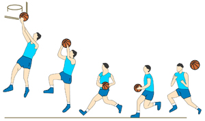Lanzamiento en carrera, con una sola mano, después de haber dado máximo dos pasos después de dejar de botar el balón.