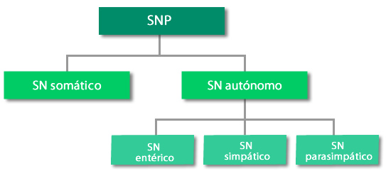 El sistema nervioso periférico, se divide en sistema nervioso somático y sistema nervioso autónomo.