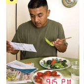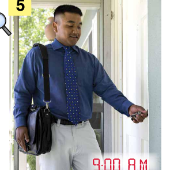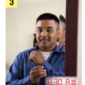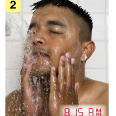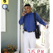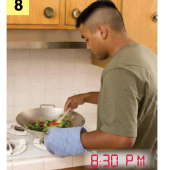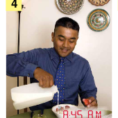 Matching Pairs Matching Unit 7 SentencesOnline version Matching sentences to pictures of daily activities. by April Jackson 1 He goes to work at 9:00 A.M. 2 He cooks dinner at 8:30 P.M. 3 He washes the dishes at 9:30 P.M. 4 He gets up at 8:00 A.M. 5 He gets home at 7:15 P.M. 6 He goes to sleep at 12:00 A.M. 7 He eats dinner at 9:15 P.M. 8 He exercises at 7:30 P.M. 9 He takes a shower at 8:15 A.M. 10 He eats breakfast at 8:45 A.M. 11 He watches TV at 10:00 P.M. 12 He gets dressed at 8:30 A.M.