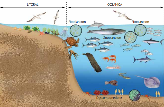 únicos productores de la zona oceánica, el fitoplancton, se encuentran en por