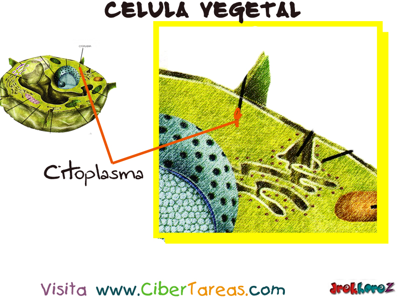• El citoplasma es la parte del protoplasma que, en una célula eucariota, se encuentra entre el núcleo celular y la membrana plasmática.1​2​ Consiste en una dispersión coloidal muy fina de aspecto granuloso, el citosol o hialoplasma, y en una diversidad de orgánulos celularesque desempeñan diferentes funciones.