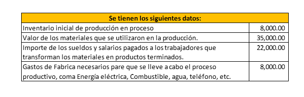 Con los siguientes datos determina el COSTO DE PRODUCCIÓN: