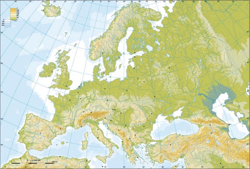 Mapa Europa FisicoOnline version Mapa Fisico - Rios y Montes Europa by Hector Martinez Alvarez 1 Oceano Atlántico 2 Mar del Norte 3 Montes Escandinavos 4 Mar Negro 5 Mar Caspio 6 Caucaso 7 Alpes 8 Alpes Dináricos 9 Gran llanura Europea 10 Mar Mediterráneo 11 Mar Jónico 12 Balcanes 13 Apeninos 14 Llanura de la Europa Oriental 15 Montes Urales 16 Pirineos 17 Macizo Central 18 Región de los Lagos 19 Río Loira 20 Río Sena 21 Río Elba 22 Río Po 23 Río Danubio 24 Río Támesis 25 Río Volga 26 Río Rin
