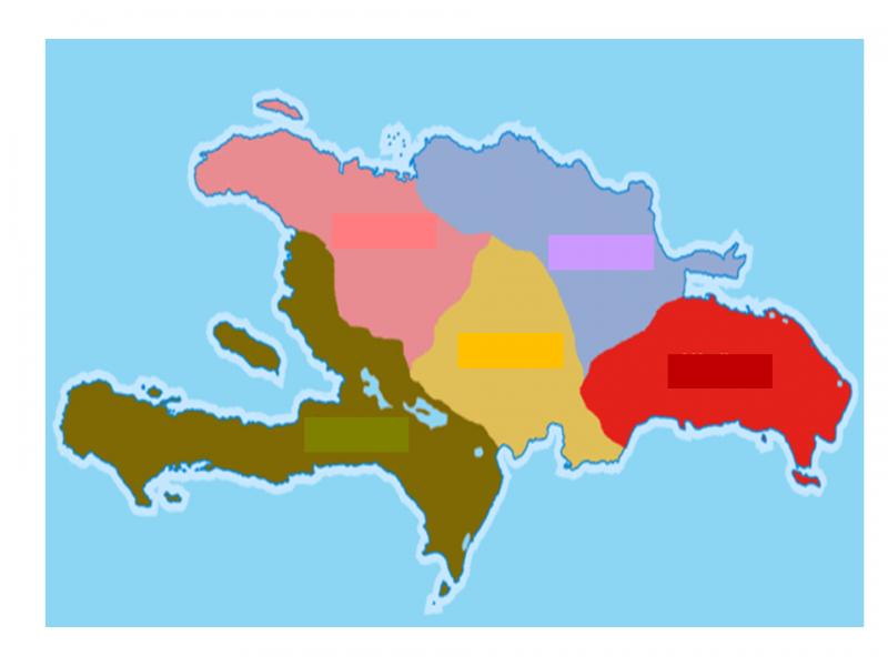GeografiaOnline version Ubica los cacicazgo by Jose Sentilis 1 Marien 2 Higuey 3 Magua 4 Jaragua 5 Maguana