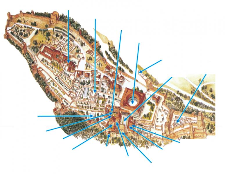 Partes de la AlhambraOnline version Relaciona cada parte en su lugar correspondiente by Ana Maestra 1 Ciudad Palatina 2 Puerta de la Justicia 3 Baños Árabes 4 Sala de los Abencerrajes 5 Palacio de Carlos V 6 Patio de los Arrayanes 7 Alcazaba 8 Sala del Mexuar 9 Patio del Mexuar 10 Salón de Embajadores 11 Baños Reales 12 Patio de Lindaraja 13 Sala Dos Hermanas 14 Patio de los Leones 15 Jardines del Partal 16 Peinador de la reina