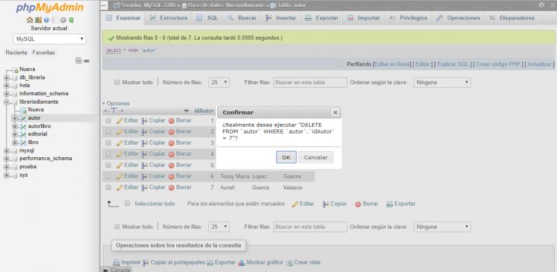 Actividad de evaluación del tema borrar un registroOnline version Selecciona el recuadro correcto, conforme a las siguientes preguntas. by BUAP Codaes 1 Opción para eliminar un registro 2 Mensaje que indica que se realizará la eliminación del registro 3 Opción para cancelar la eliminación del registro 4 Botón para aceptar el borrado del registro 5 Espacio para seleccionar el registro a eliminar 6 Para visualizar la tabla ¿A qué sección me dirijo?