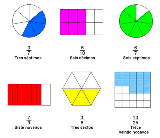 Todas las fracciones reciben un nombre específico, se pueden leer como tal, de acuerdo al numerador y denominador que tengan.