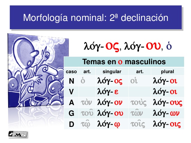 declinaciones y vocabularioOnline version De acuerdo a la información anterior realiza la siguiente actividad. by keyla flores 1 primera y segunda declinación griega 2 segunda declinación El artículo que trata sobre lo singular y plural de las palabras. 3 Morfología nominal 4 vocabulario http://javascript:void(0);