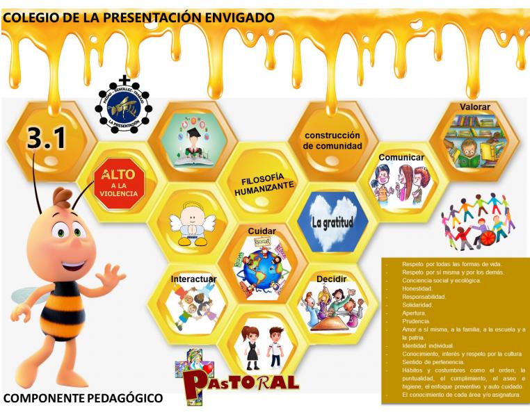 1 3.1 CARACTERIZACIÓN DE LA GESTIÓN EDUCATIVA 2 PROYECTO COMÚN EN NUESTRO COLEGIO PARA MEJORAR LA CONVIVENCIA CIUDADANA 3 proceso permanente que abarca las distintas etapas de la vida de las personas y que tiene como finalidad alcanzar su desarrollo moral, intelectual, artístico, espiritual y físico, mediante la transmisión y el cultivo de valores, conocimientos y destrezas, enmarcados en nuestra identidad nacional, capacitándolas para convivir pacíficamente, reconociendo la diversidad étnica, cultural y ambiental para participar en forma responsable y activa en la comunidad. 4 el carácter de las interacciones sociales que ocurren en los espacios institucionales, tanto entre docentes y estudiantes, como de los estudiantes entre sí y con los demás integrantes de la Comunidad Educativa. 5 Aprender a no agredir al otro: hacia un modelo de convivencia escolar 6 Aprender a comunicarse: base de la autoafirmación personal y grupal 7 Aprender a interactuar: base de los modelos de relación social 8 Aprender a decidir en grupo: base de la política económica 9 Aprender a cuidarse: base de los modelos de salud y de seguridad social. 10 Aprender a cuidar el entorno: fundamento de la supervivencia 11 Aprender a valorar el saber cultural y académico: base de la evolución social y cultural. 12 Los valores que se incentivan en la Institución, que proveen una base estable sobre la cuales se toman decisiones y ejecutan las acciones: 13 2018 año de: 14 Sujeto social único, con derechos y deberes, pensante y constructor de procesos. 15 le da significado a la tarea educativa, si se logra hacer de este una vía con el cual se integre la evangelización en cada una de las situaciones que se viven en la institución 16 El artículo 46 de la Ley 115, determina que todos los colegios de la Nación, llegado el caso, están en la obligación de integrar en el servicio educativo personas con limitaciones físicas, sensoriales, psíquicas, cognoscitivas, emocionales o con capacidades intelectuales excepcionales. Así mismo, en el marco de la educación inclusiva el decreto 1421 del 29 de agosto de 2017, reglamenta la atención educativa a la población con discapacidad y detalla específicamente en su subsección 3, literal c, la responsabilidad de los establecimientos educativos públicos y privados para el cumplimiento de las obligaciones establecidas por la ley 1618 del 27 de febrero de 2013.